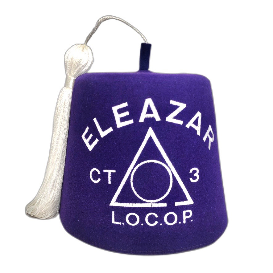Machine embroidered Circle of Perfection fez. This fez comes with an 18" tassel stitched down at the top of the fez. The fez body is 100% purple felt with a ventilated top. The price includes LOCOP, the emblem, court name and court number.