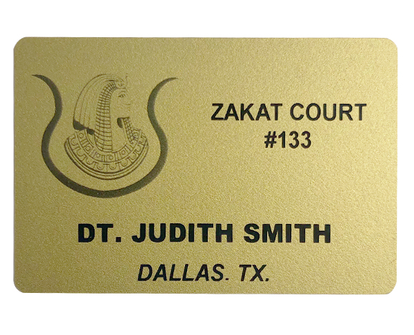 Daughters of Imperial Court printed gold nameplaete. The name plate is a 3x5 plastic card. It can hold up to 3 lines of information. There will be an adhesive on the back so you can attach it to your fez case or any other hard surface.