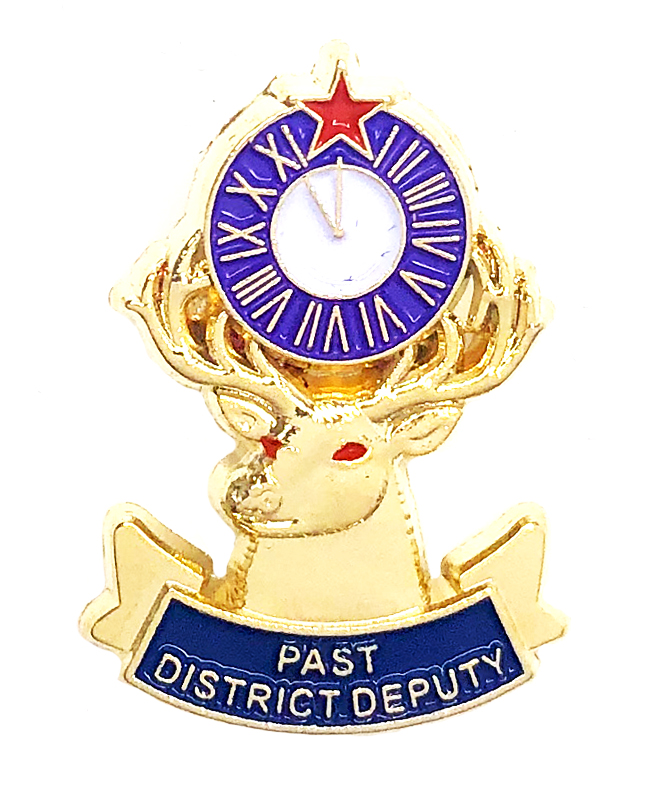 Embrace your district legacy with the Elks Past District Deputy Officer Pin. This 1" x 3/4" pin, presented in a box, symbolizes the prestige of your esteemed position.