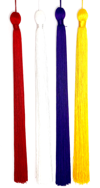 24" color tassels. These tassels have no banding and measure 24" in length. They are available in a variety of colors.