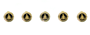 Masonic Past Master gold-tone button covers in a set of 5. They have a gold-tone border and black enamel in the center. In the center of the button cover is the Past Master emblem.