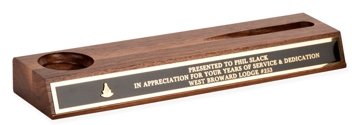 10" Walnut Gavel Stand with Engraving. It comes with up to 3 lines of engraving included in the price. This stand is a great way to display your gavel.