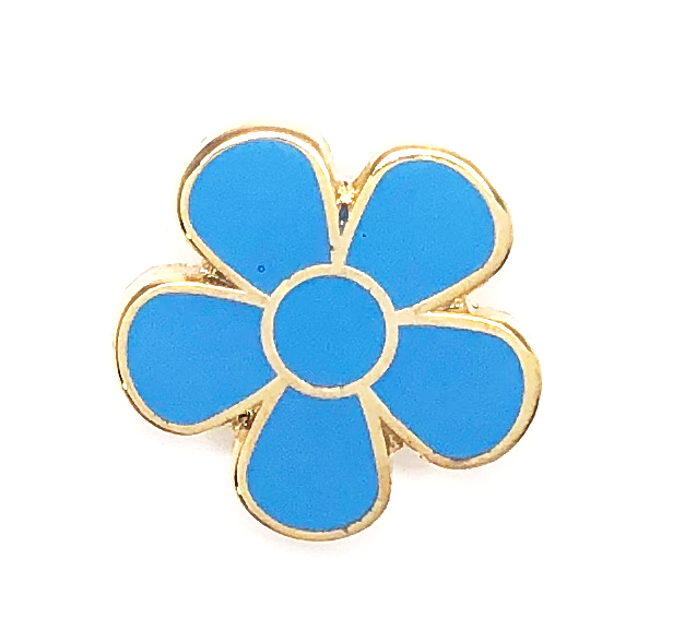 The forget-me-not pin measures 1/2 inch and has a clutch pin back.