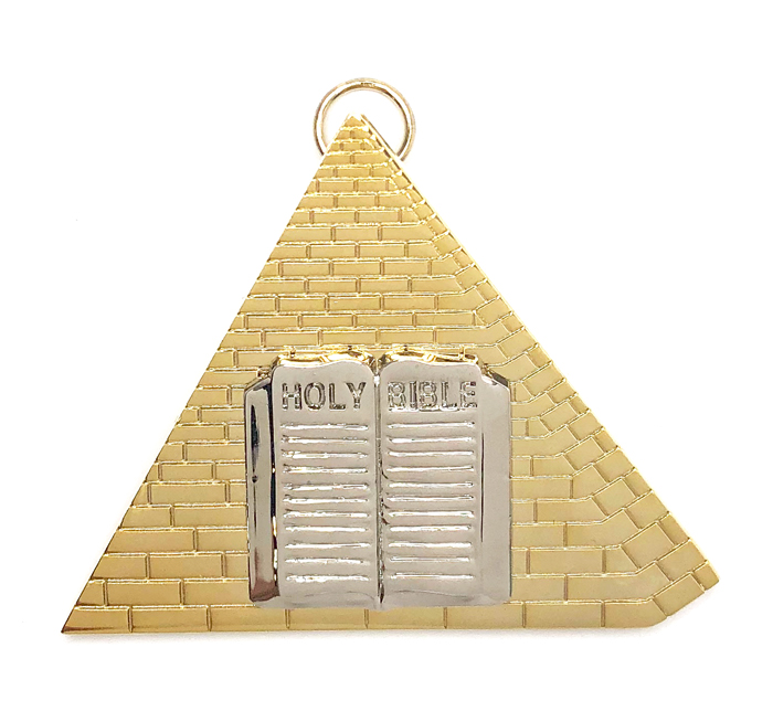 The Chaplain jewel measures 3" and has a gold on gold finish. This jewel is is available in both D. Turin`s Brand and V.H. Blackinton.