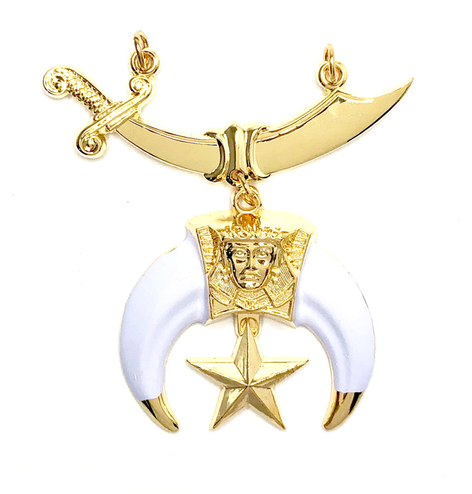 The Honorary Past Potentate Jewel, available in both D. Turin's Brand and V.H. Blackington, measures 3" and features a gold finish with white enamel. The listed price is for D. Turin's Brand; selecting V.H. Blackington will adjust the price accordingly.