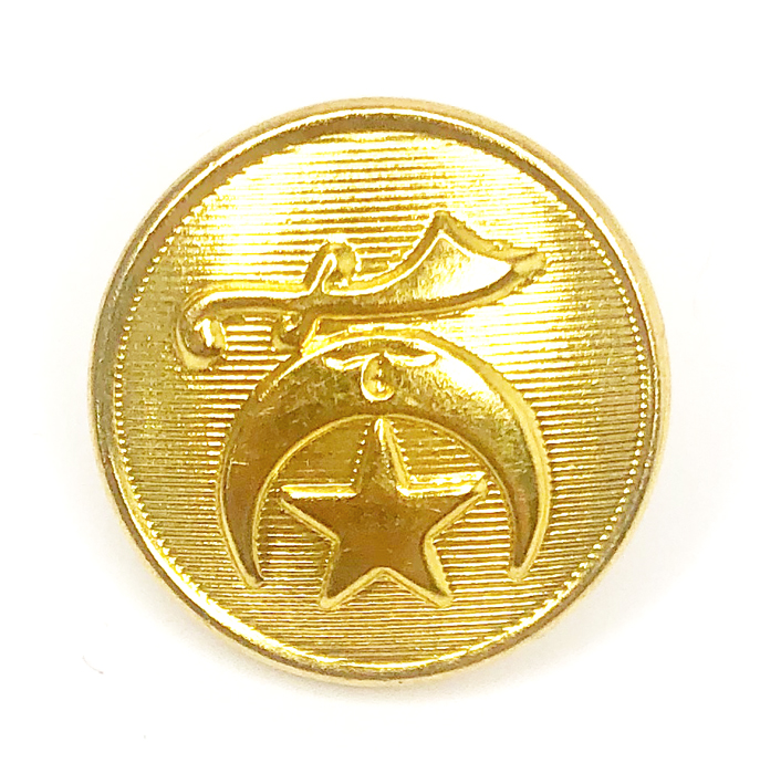 The large brass button measures approximately 1" in diameter. It has a loop on the back so it can be sewn on to a blazer or any garmet of clothing.