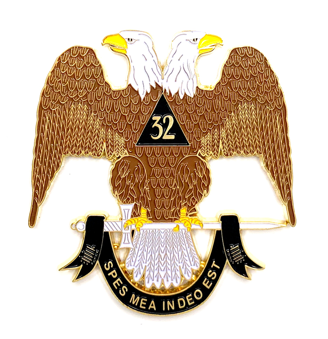 The Deluxe 32nd Degree Cutout Car Emblem is a striking representation of Masonic pride. Featuring a fully cutout double-headed eagle with wings down, this emblem showcases intricate detailing. Made of durable zinc metal, it measures 3 inches and comes with a strong peel-and-stick backing for easy application. A perfect addition to any vehicle, this emblem is designed for long-lasting display and recognition.