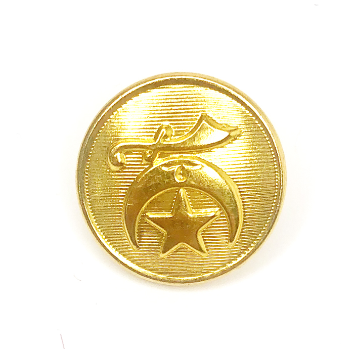 The small brass button measures approximately 5/8" in diameter. It has a loop on the back so it can be sewn on to a blazer or any garmet of clothing.