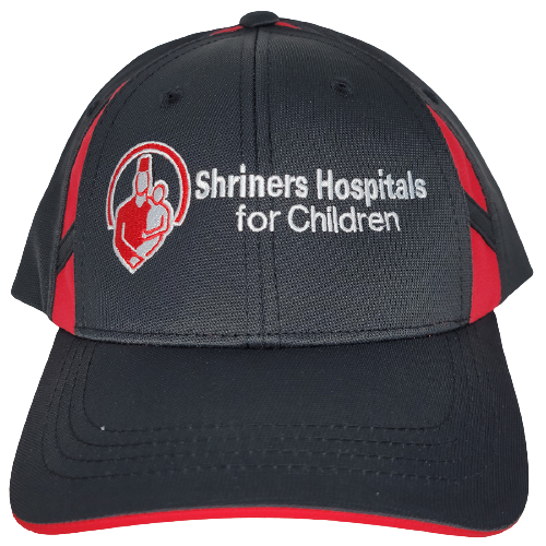 The Shrine Hospital emblem is embroidered on the front of the cap. Mesh insets for breathability combine with moisture-wicking Dry Zone® technology for a cap that performs. A contrast underbill and color blocking