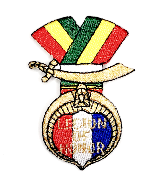 The Legion of Honor logo with the tricolor ribbon is fully embroidered with an iron-on back. It measures 1 1/2" in height.
