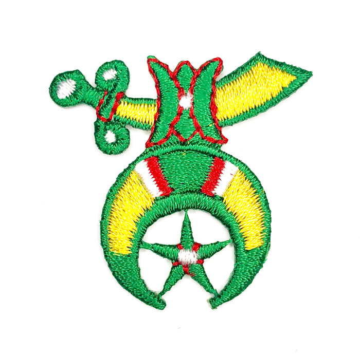 This green, yellow, red, and white cut out emblem is fully embroidered with an iron-on back. It measures 1" in height.
