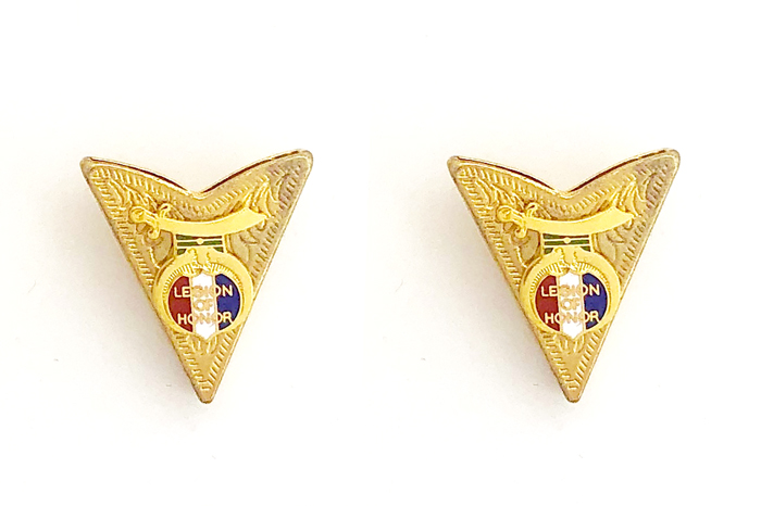 Shrine Legion of Honor mini collar tabs are gold in color. The Legion of Honor emblem is in the center of the collar tab. The collar tabs measures approximately 1 1/4".