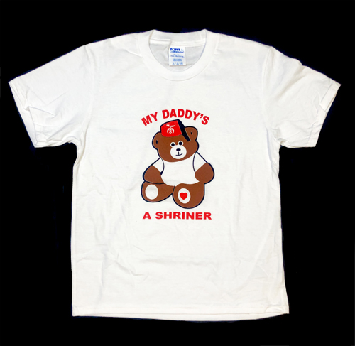 My Daddy's a Shirner kids shirt! This features an adorable bear wearing his fez. The shirt is 100% cotton for children's comfort.