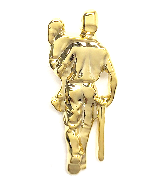 Shrine Editorial pin in gold-tone. This pin represents the traditional Walking Tall logo. This is pin is gold-tone and has a shiny finish. The pin is 1 1/4" in height.