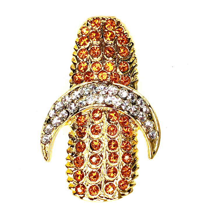 This corn cob tassel holder has amber stones for the cob and clear stones across the front. Perfect for any Hillbilly. There are two clutch back pins to secure the tassel holder to your fez.