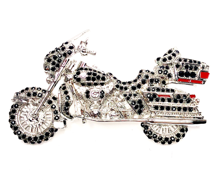 Motorcycle tassel holder. These silver-tone touring motorcycles have black rhinestones. This tassel holder is great for motorcycle enthusiast or anyone looking to add a little fun to their fez.